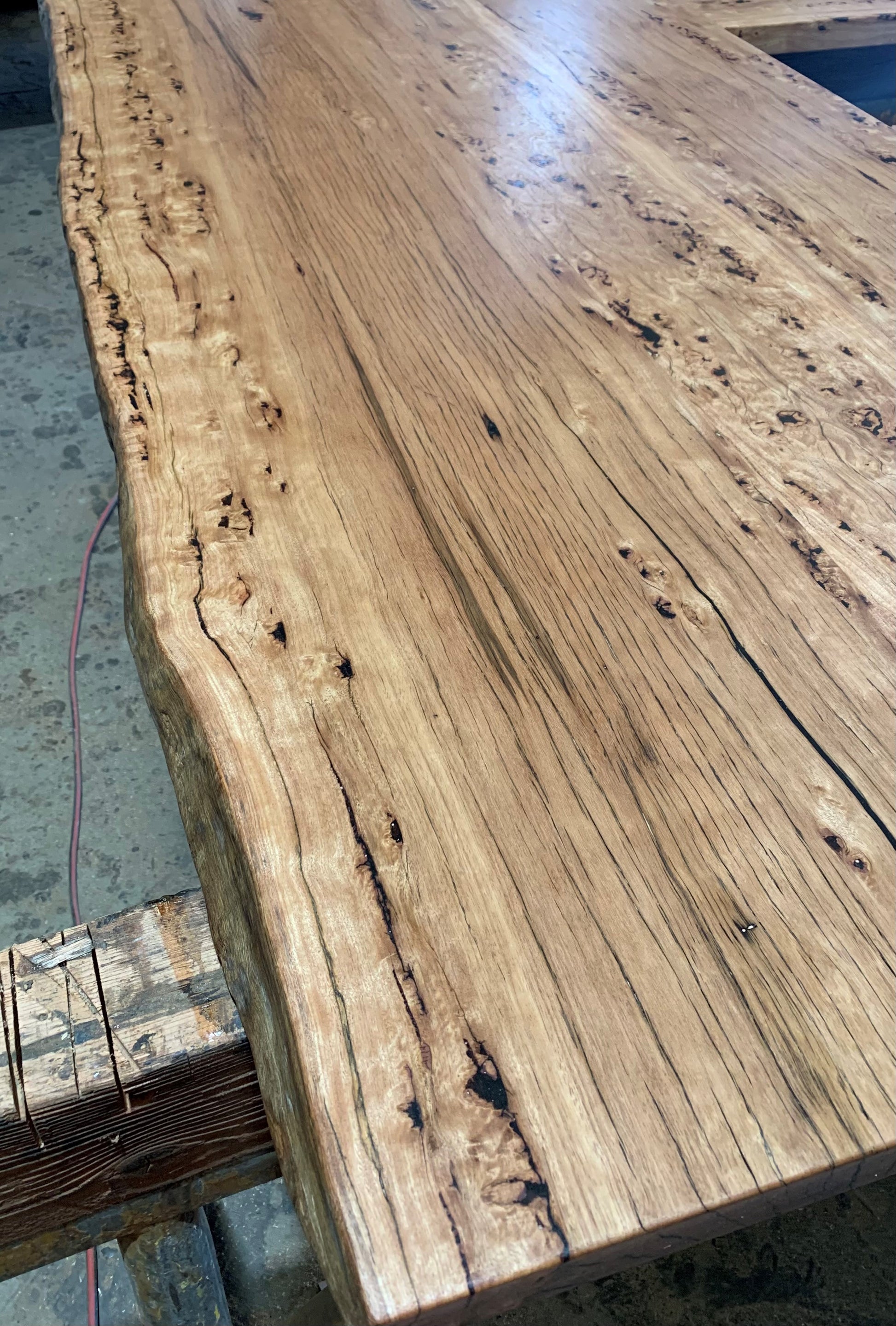 If you’re looking to add a unique focal point to your home, Birdseye Messmate timber with a natural edge is hard to beat. Known for its warm tones, striking grain patterns, and distinctive “birdseye” figuring, this Australian hardwood brings a depth of character that instantly elevates any space.